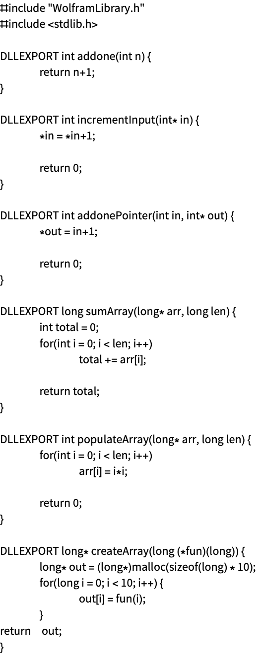 You can also load existing libraries. Alternatively, you can create your own libraries from within the Wolfram Language. This is quite useful for learning about using FFI and will be used in other examples in this tutorial.