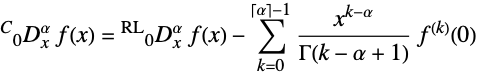 , the CaputoD output coincides with FractionalD—this is just because of their definitions: