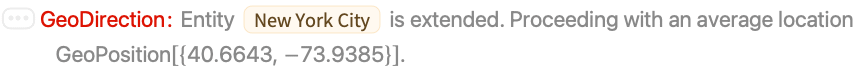 | GeoDirection[loc1,loc2] | angle from north at loc1 of the geodesic from loc1 to loc2 |