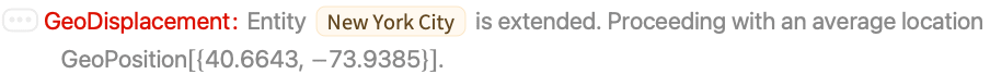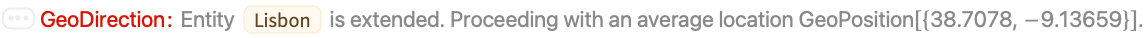 Given a location, it is frequently important to know instances of a particular type of entity that are at a short distance from it. This is the role of the function GeoNearest. If the locations or entities are extended, you may also be interested in inclusion relations.