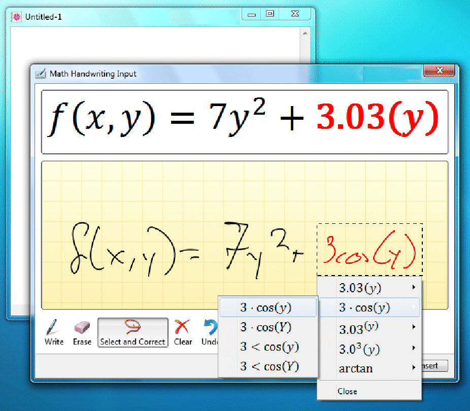 Note: If your handwritten math is misrecognized, you can correct it either by selecting a suggested alternative or by rewriting the misrecognized part of the mathematical expression. See "Editing Math Handwriting in the Wolfram System" for more information on making corrections.