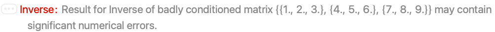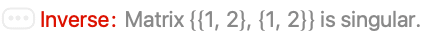 If you try to invert a singular matrix, the Wolfram Language prints a warning message, and returns the input unchanged: