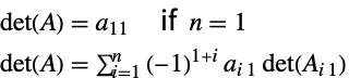 The determinant of an n×n matrix is defined as follows.