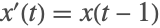 | x[t /; t≤t0]ϕ | specification of initial history function as expression ϕ for t less than t0 |