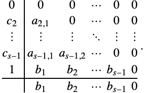 For consistent FSAL schemes the Butcher table (3) has the form: