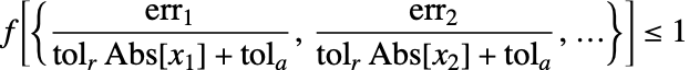 NDSolve uses error estimates for determining whether it is meeting the specified tolerances. When working with systems of equations, it uses the setting of the option NormFunction->f to combine errors in different components. The norm is scaled in terms of the tolerances, given so that NDSolve tries to take steps such that