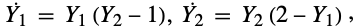The Lotka–Volterra system arises in mathematical biology and models the growth of animal species. Consider two species where