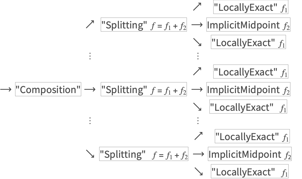 The following examples will use a second-order symmetric splitting known as the Strang splitting [S68], [M68]. The splitting coefficients are automatically determined from the structure of the equations.