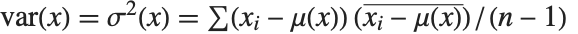 | Covariance[v1,v2] | covariance coefficient between lists v1 and v2 |