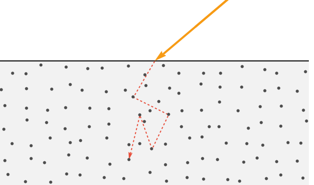 In PBS, this effect is achieved by assuming the existence of a secondary specular layer just above the base surface. Now we split the incoming light twice—once at the coat layer and again at the base surface.