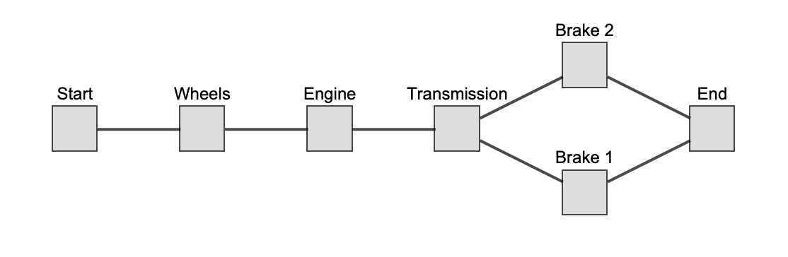 Reliability modeling concerns itself with how long the system will function in a satisfactory manner. This is done by studying what combinations of components must function in order for the system to function. A simplified reliability model of a car would be to consider the car working if the wheels are working (no flats, for example), the engine is producing enough power, the transmission can transfer that power to the wheels, and finally that one in a redundant pair of braking systems works.