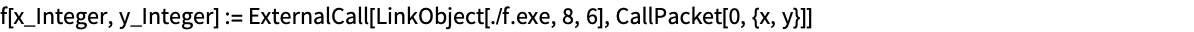This specifies that the function XF1 in the Wolfram Language should be set up to call the function f in the external C program.