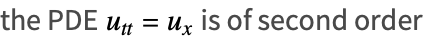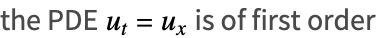 1. Order of the PDE . The order of a PDE is the order of the highest partial derivative in the equation, for example: