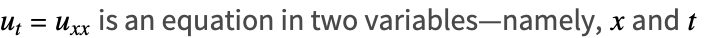 are differentiated with respect to the independent variables. For example, in the one-dimensional heat equation