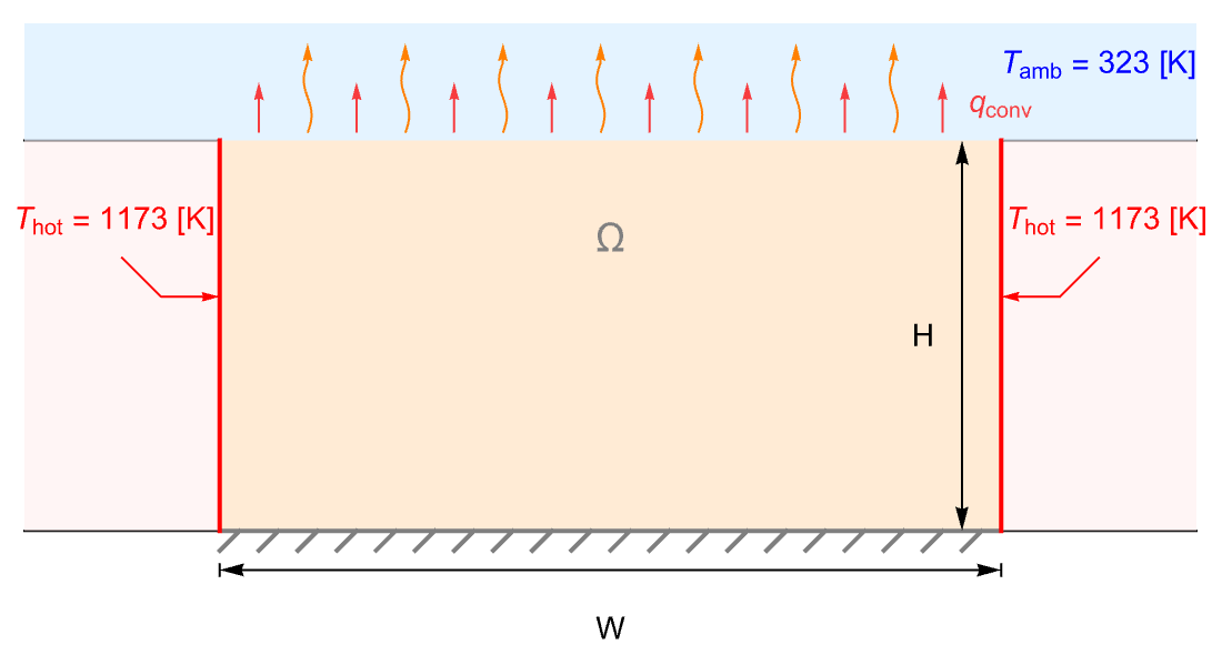 A default thermally insulated boundary condition is implicitly applied on the remaining bottom boundary: