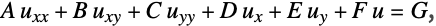 Similarly, the most general second-order PDE in two independent variables can be written as: