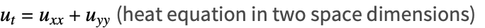With this abbreviated notation at hand, we list a few well-known PDEs [3] with unit coefficients: