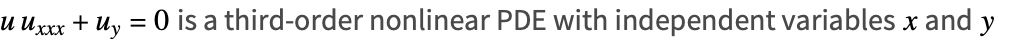 The unknown function u is called the dependent variable and is a function of several independent variables like the time t and spatial coordinates like x. Partial differential equations are constructed from terms where the dependent variables
