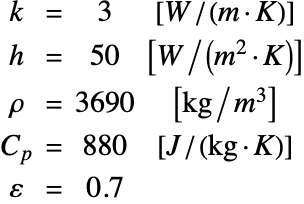 The thermal conductivity k, heat transfer coefficient h, density ρ, heat capacity