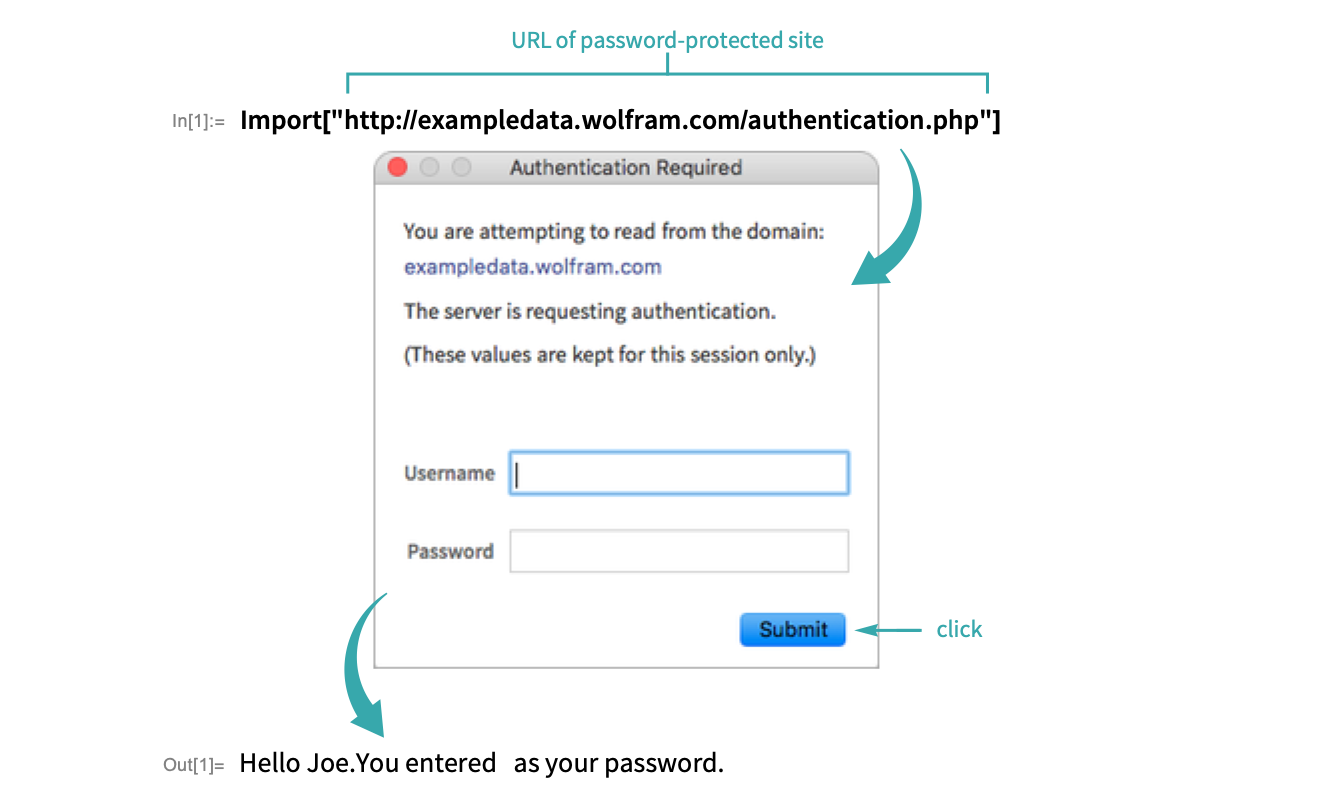 Evaluate Import with the password-protected site in question. This will generate an authentication dialog. Enter your credentials to access the content: