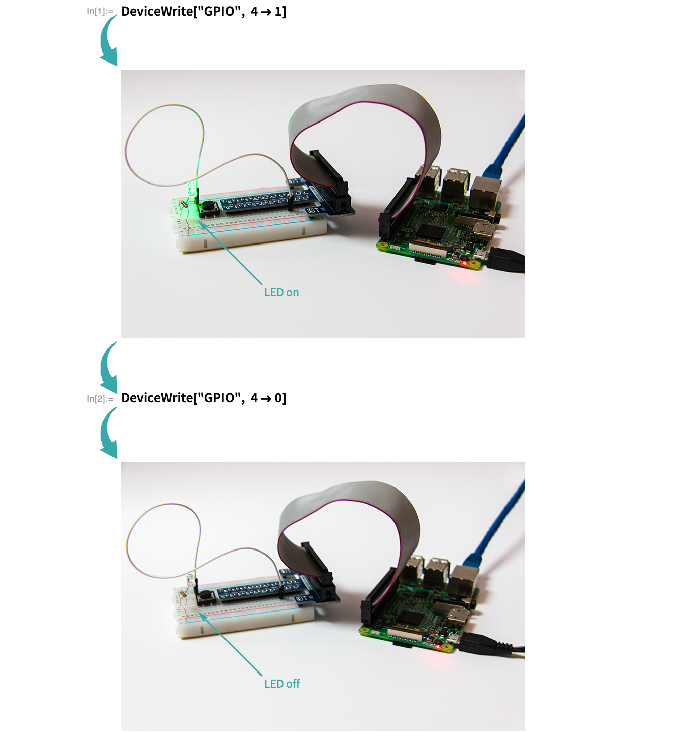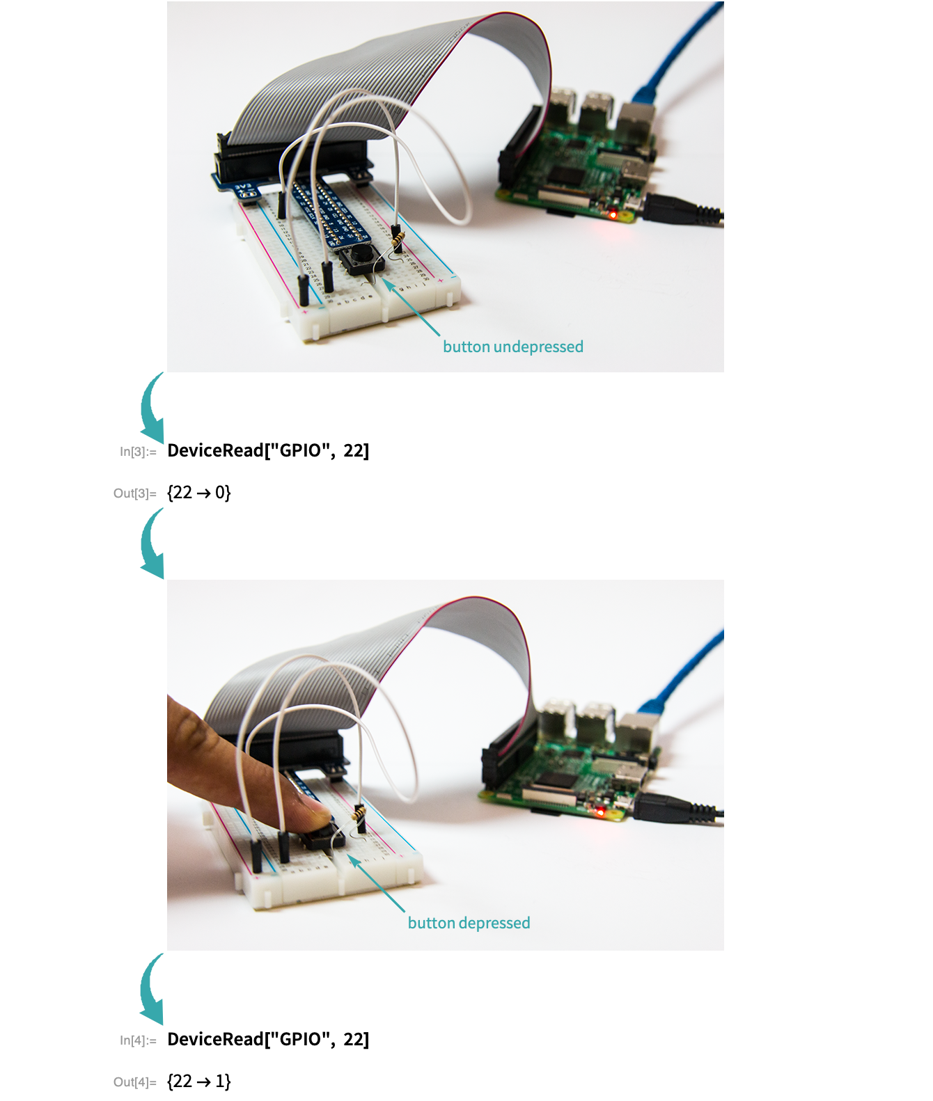 Wolfram Language code running on Raspberry Pi can read and write to the GPIO device to sense inputs and send outputs.