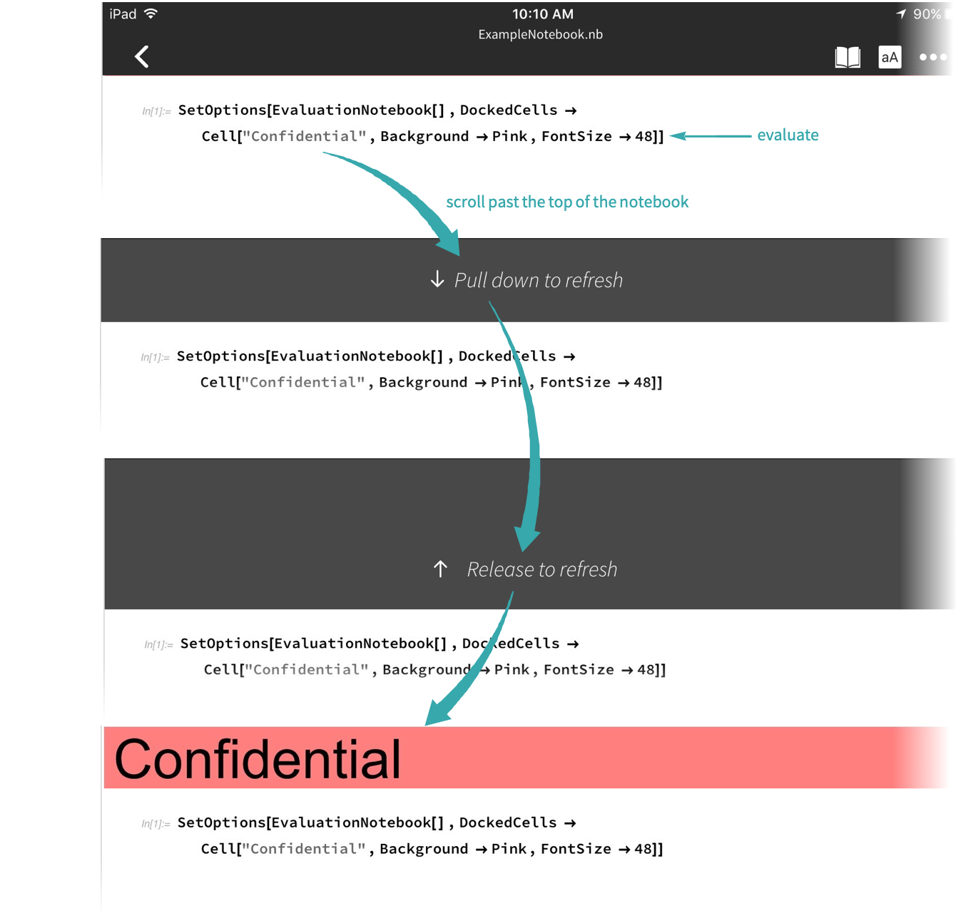 Set the DockedCells option to add a banner to the current notebook. Scroll past the top of the notebook (iOS) or press the Refresh button