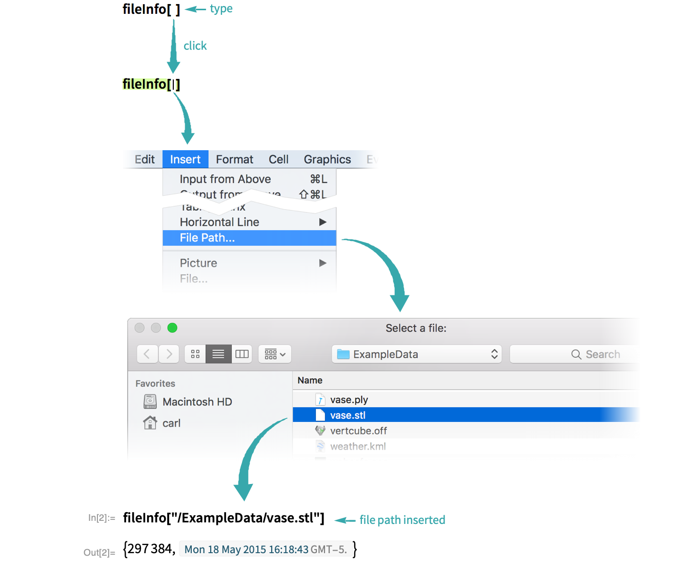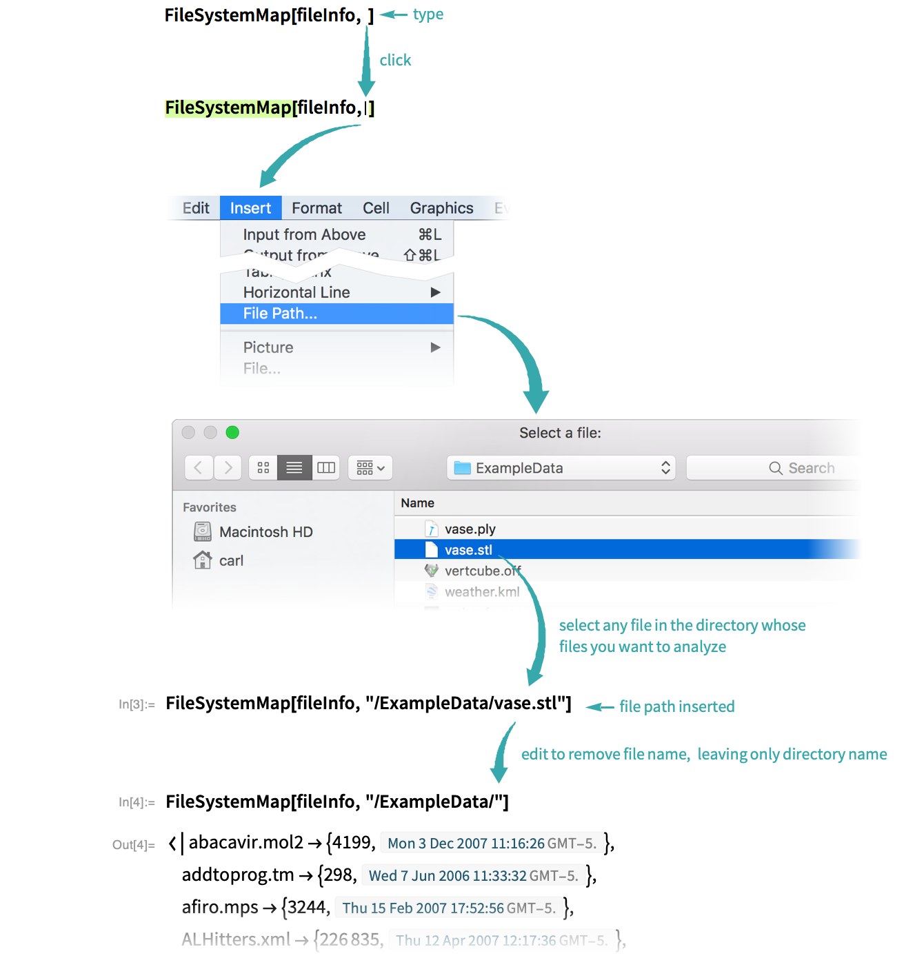 Use Insert ▶ File Path to insert a file path as an argument to the function and evaluate: