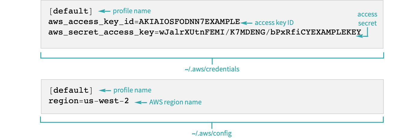 - If you have the AWS CLI installed, you can create these files interactively on the command line with the