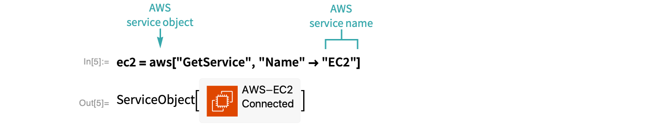 Use the master AWS service object to obtain a child service object representing Amazon EC2: