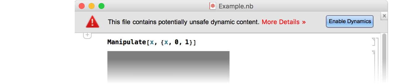 If you open a Wolfram Notebook that contains Dynamic content, you may get a warning banner at the top that looks like this:
