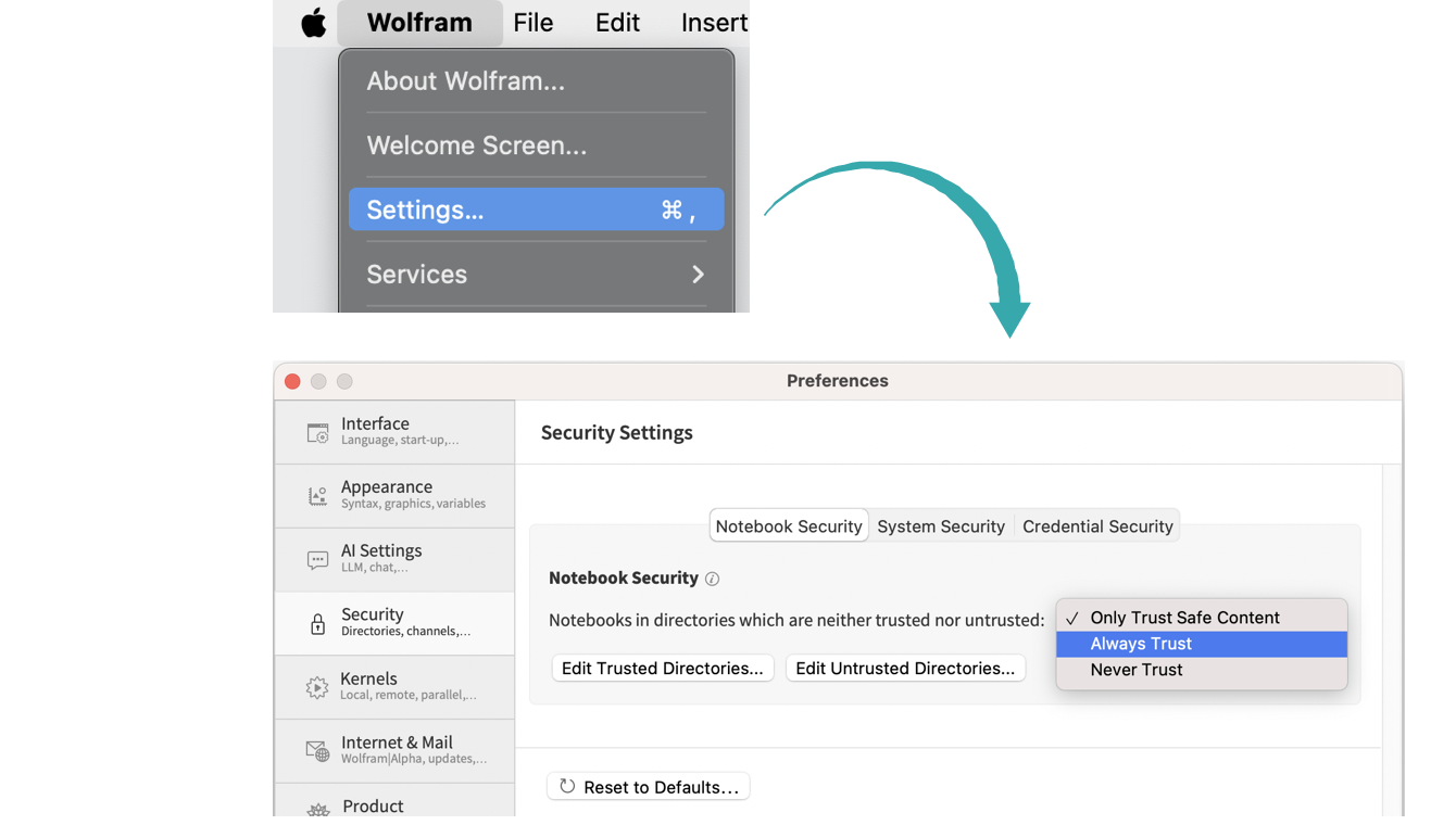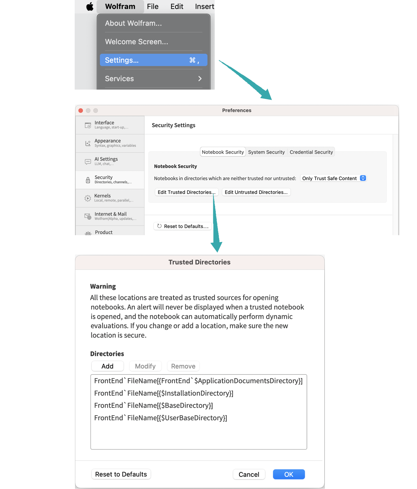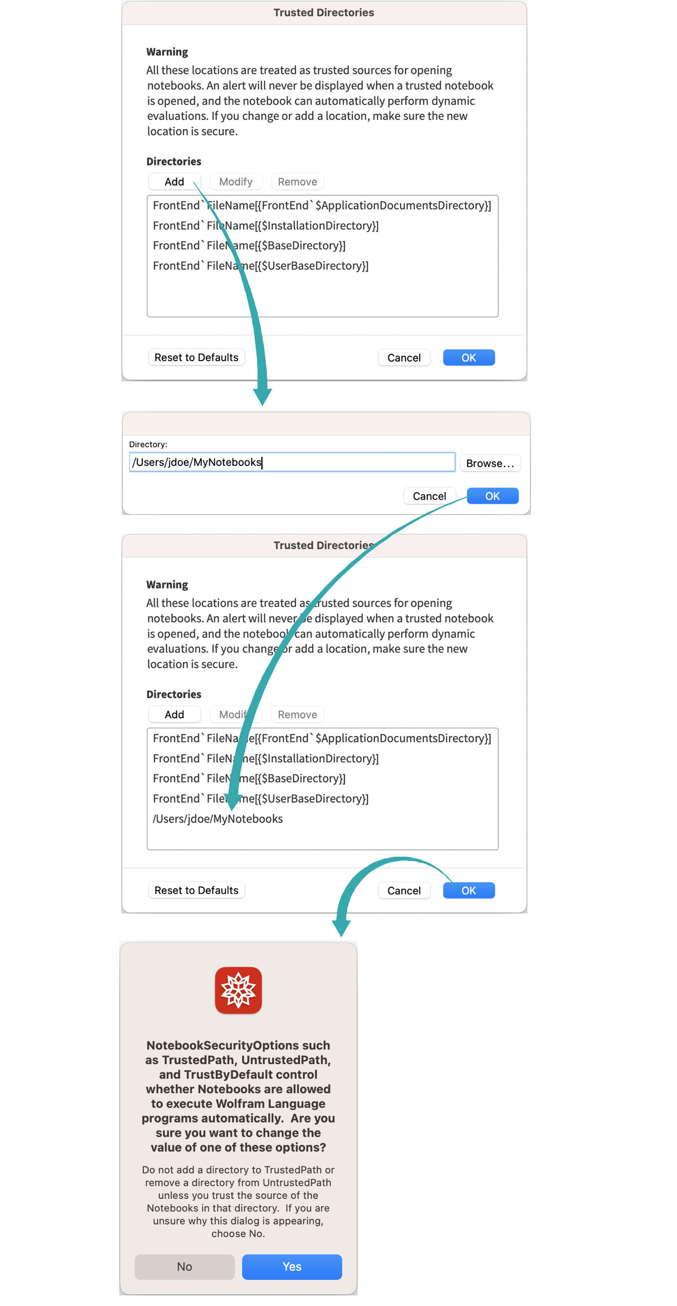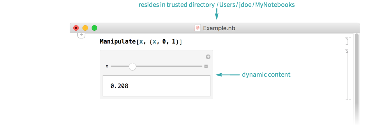 When you open a notebook in one of your trusted directories, you will not get the dynamic content warning: