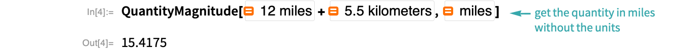 - The second argument to QuantityMagnitude is optional, but it is safest to specify it explicitly if the first argument is a computation, since units may change in the course of a computation.