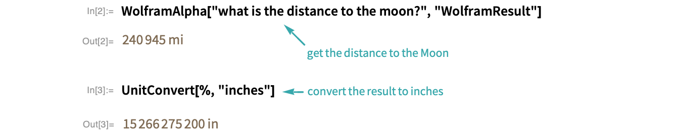 There are many more ways to get results from Wolfram|Alpha. See the WolframAlpha documentation for complete details.