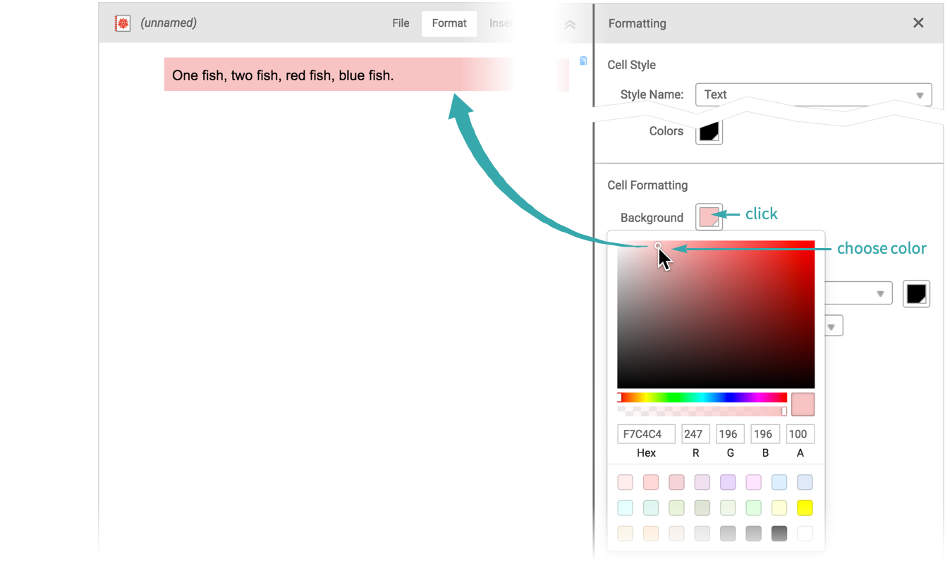 Click the background color swatch and choose a color from the popup palette: