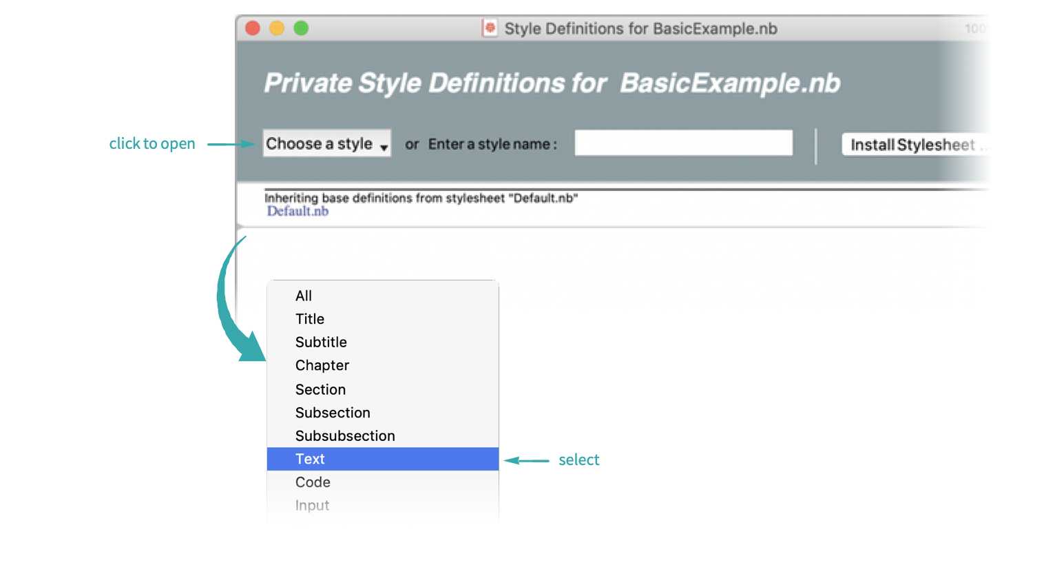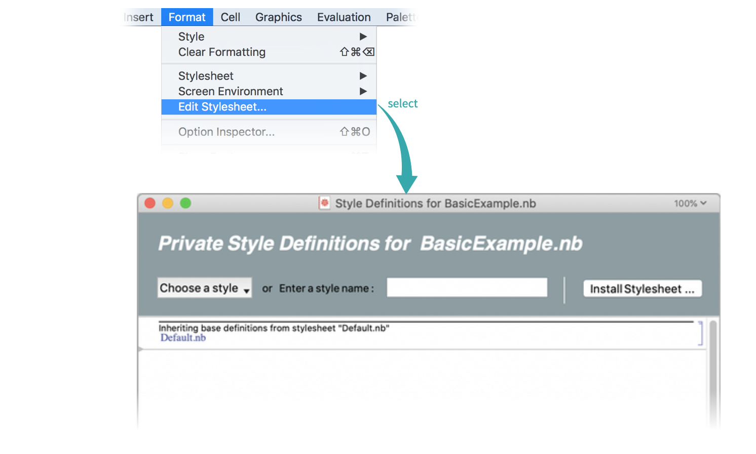 To change a style in the current notebook, choose Format ▶ Edit Stylesheet: