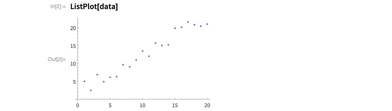 Plot the data in a scatter plot. By default, the points are marked with blue dots: