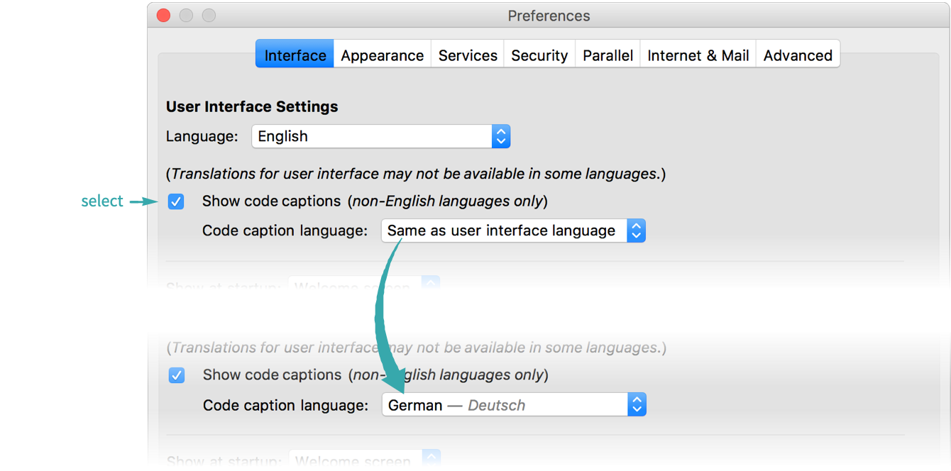 Annotate Wolfram Language code with captions that give translations to a non-English language.