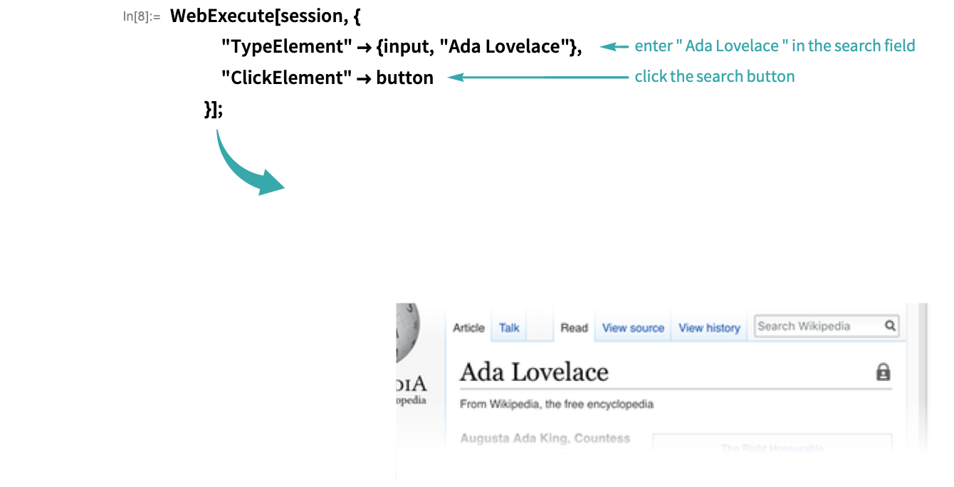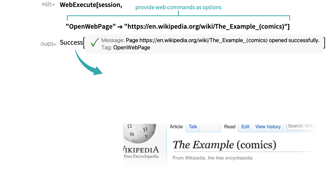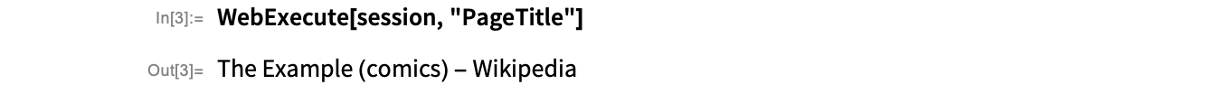 - Web session commands include "PageBack", "ClickElement", "TypeElement", "BrowserWindows" and "SetWindowSize". See the WebExecute documentation for a complete list.