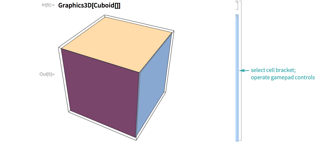 Three-dimensional graphics can be rotated with gamepad controls by selecting the cell bracket of the graphic: