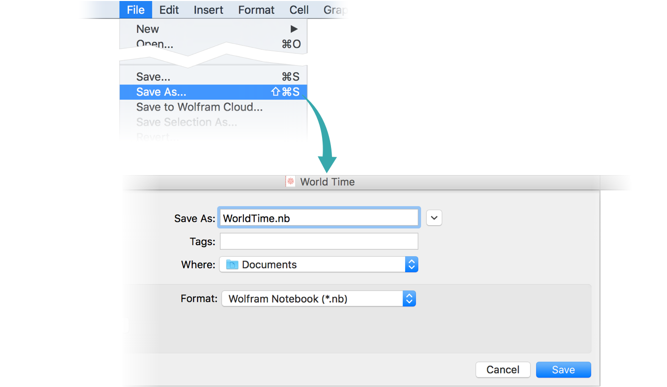 Use File ▶ Save As to save a copy of the cloud notebook on the desktop: