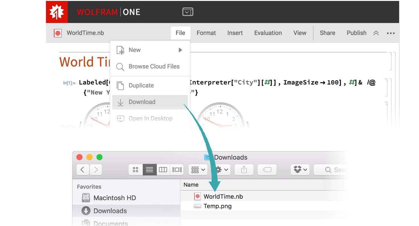 Choose File ▶ Download. Depending on your browser, either the notebook will be automatically downloaded to the desktop or you will be asked what you want to do with the notebook: