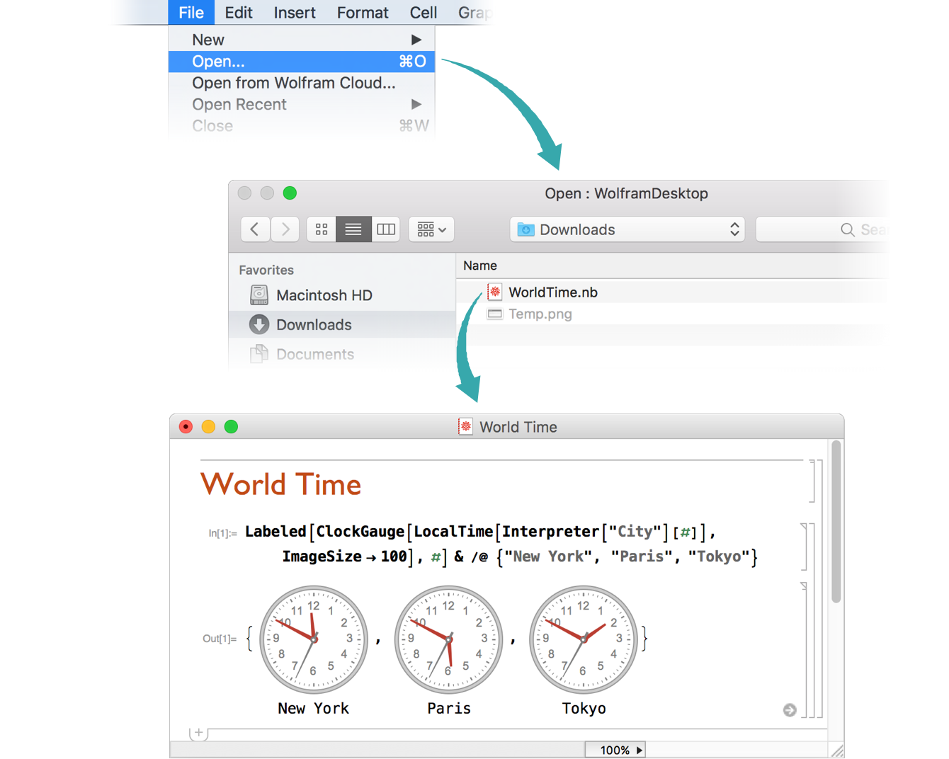 Choose File ▶ Open on the desktop and open the downloaded notebook: