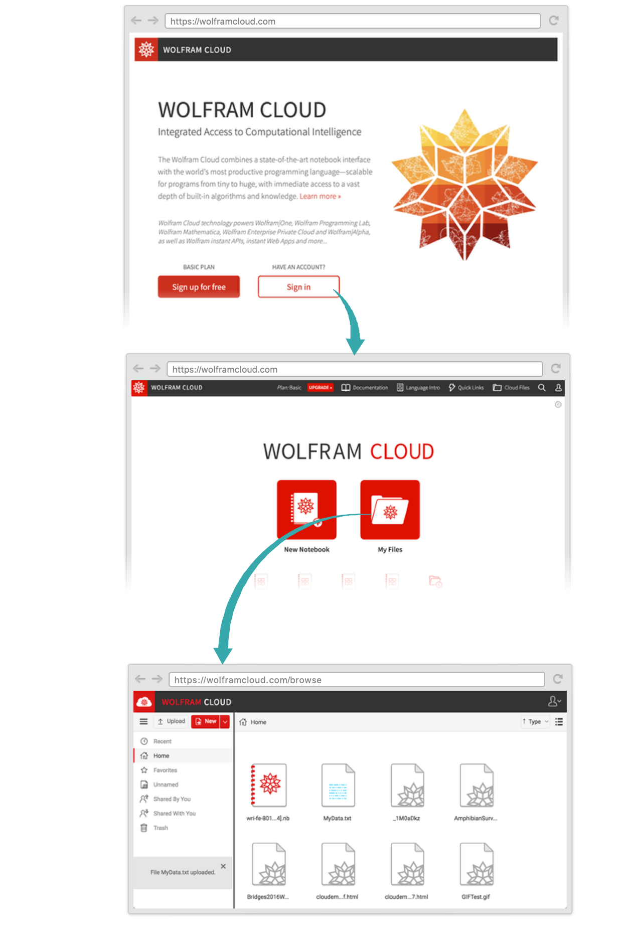 Visit wolframcloud.com, sign in if not signed in already, and choose Cloud Files. Locate the file you copied to the cloud in the Home tab: