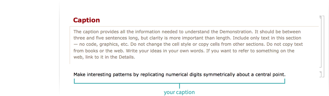 Replace “XXXX” in the Caption section with a brief caption that describes the Demonstration. The caption appears directly underneath an image of the Demonstration on the Demonstrations Project webpage: