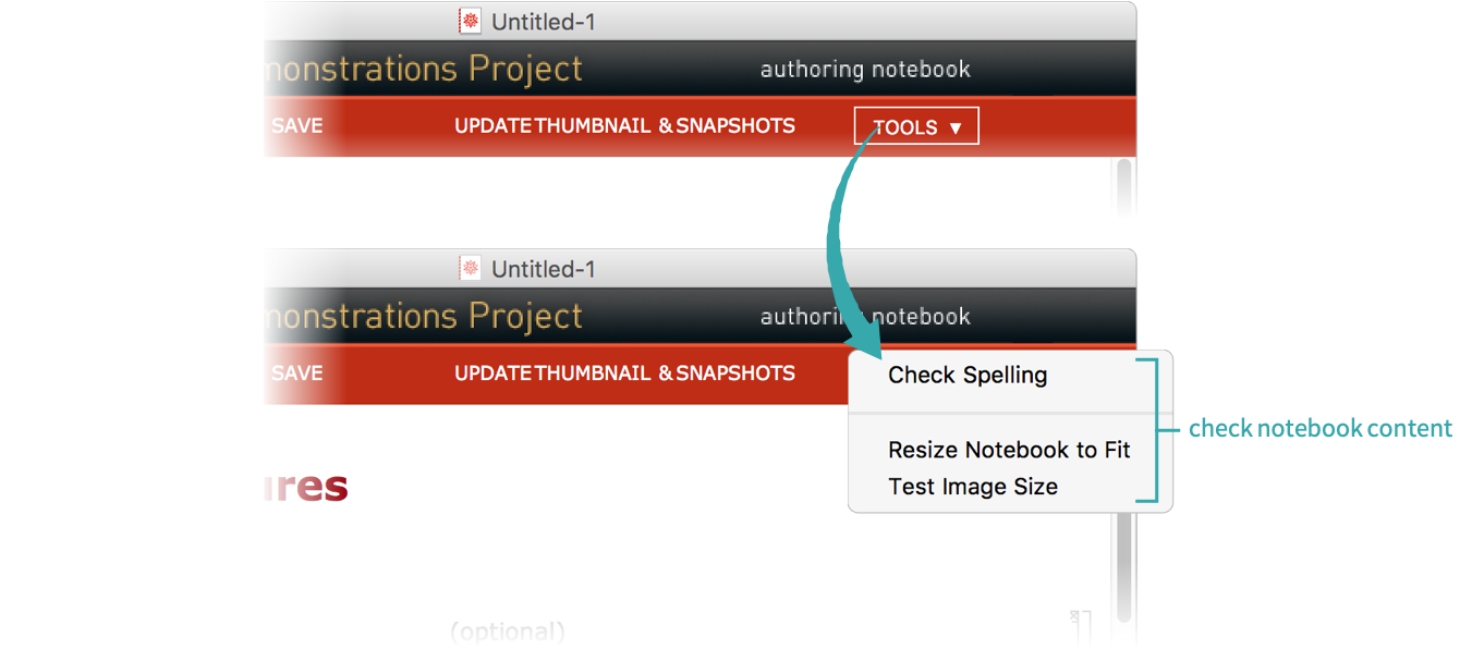 Use the items in the TOOLS menu in the toolbar at the top of the authoring notebook to check the content of your Demonstration:
