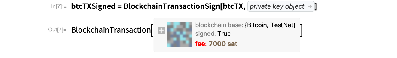 Use BlockchainTransactionSign to sign the transaction with the private key: