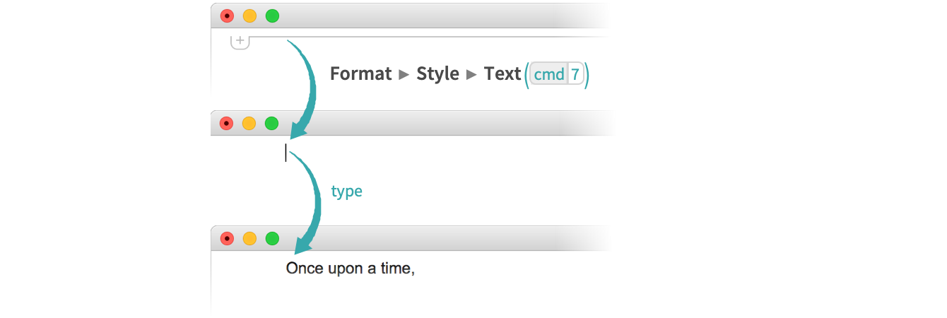 To insert a text cell using a keyboard shortcut, type the keyboard shortcut and then the cell contents: