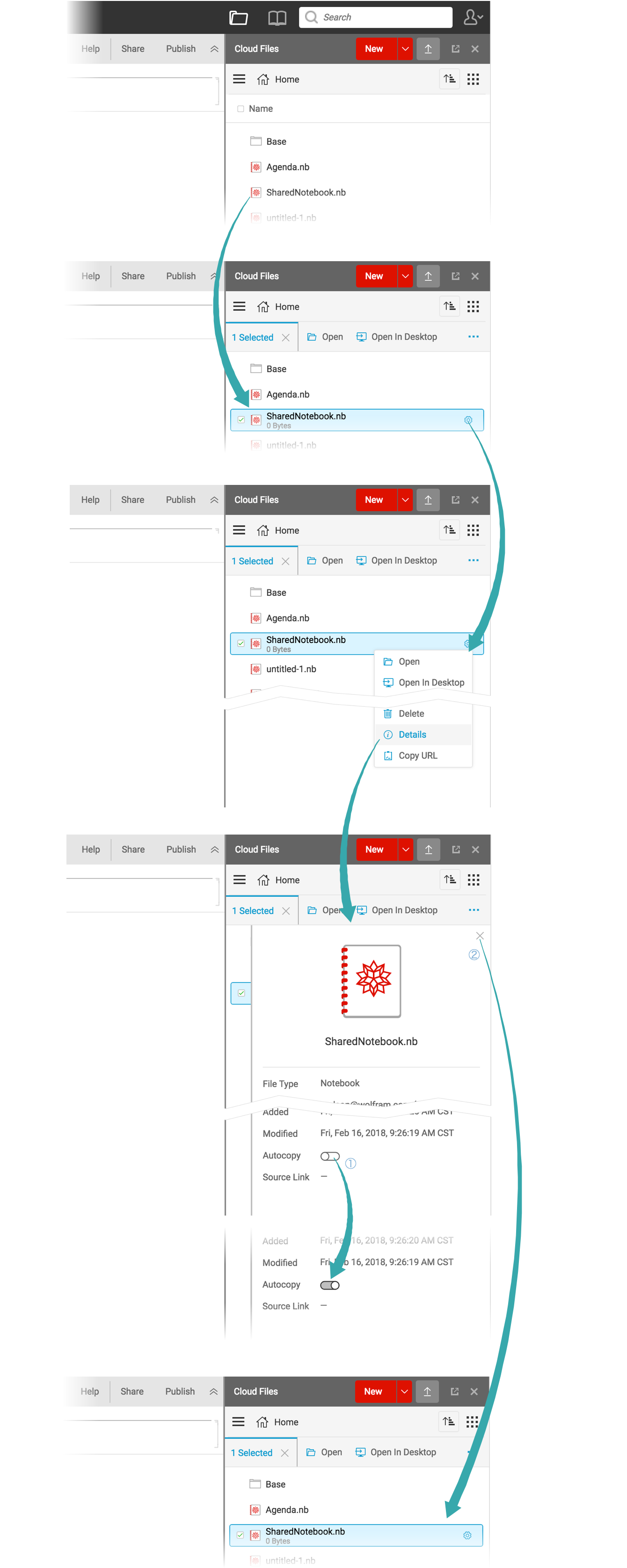 - Autocopied notebooks are stored in Cloud Files ▶ Home ▶ Copied Files.