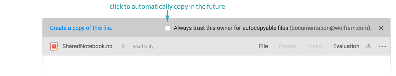 To copy notebooks from the same source automatically in the future, click Always trust this owner for autocopyable files: