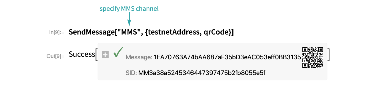 - If this is the first time you are sending a message, you will need to add a phone number to the Wolfram Integrated Services framework. Verify the phone number, then rerun SendMessage.